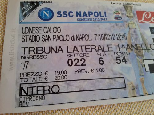 Die Ferien in Süditalien waren wieder megatoll! Das Wetter war richtig sommerlich. Mein Papa hat eine Überraschung vorbereitet und heimlich Tickets für das Spiel Napoli – Udinese organisiert. Das Erlebnis im „Stadio San Paolo“ mit 60'000 Zuschauer war enfach unglaublich. Ich habe mein Fussball-Idol Edinson Cavani live erlebt. SSC Napoli hat das Spiel 2:1 gewonnen.
